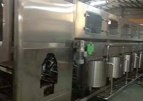 QGF-150五加侖大桶水灌裝生產線的主機設備有機架、水箱、管道、水泵、氣缸、傳動、電器等組成,完成空桶沖洗,灌裝、壓蓋等動作,通過多道沖洗工序,定量灌裝,自動帶蓋壓蓋,五加侖大桶水灌裝機生產線所有動作電腦控制,實現穩定的沖洗效果,精確的灌裝容量,密封的壓蓋效果。
